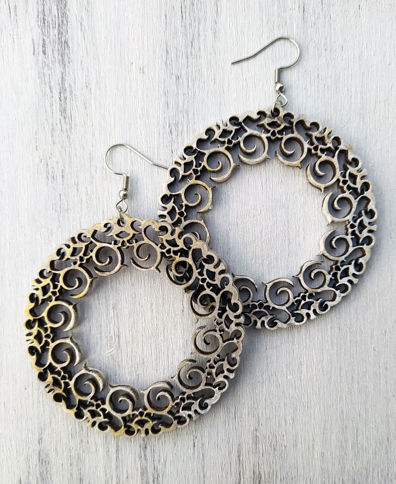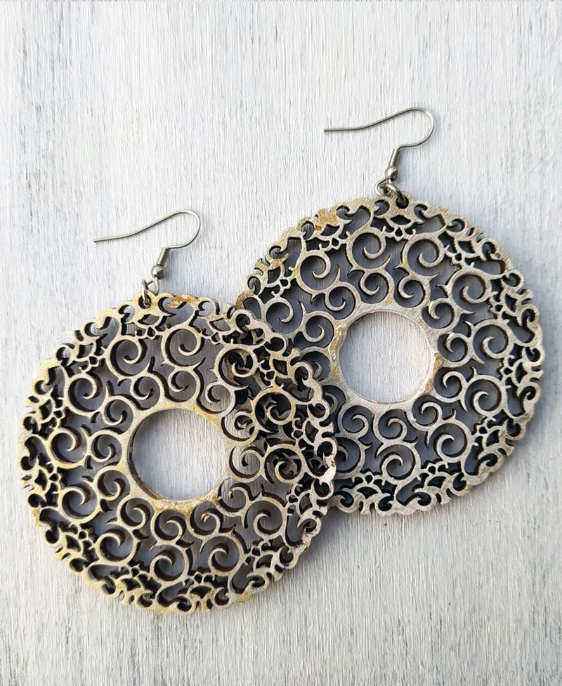 Kolczyki wykonane z drewna. Dostępne w czterech kolorach czarny, czerwony, biały i zielony że złotą poświatą, co sprawia efekt metalu. Mimo dużego... Wzór nr 7 30,00 zł