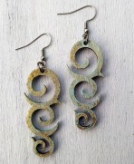 Kolczyki wykonane z drewna. Dostępne w czterech kolorach czarny, czerwony, biały i zielony że złotą poświatą, co sprawia efekt metalu. Mimo dużego rozmiaru są bardzo lekkie. Bigle że stali chirurgicznej.